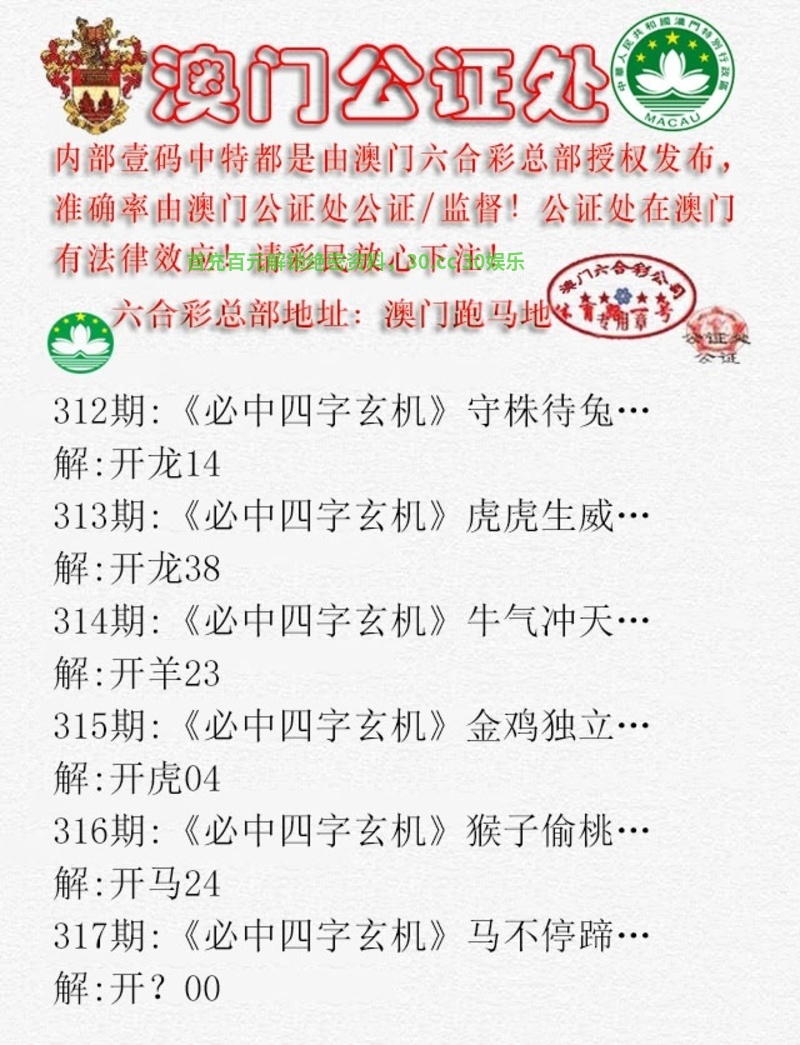 公证处四字玄机:第318期{开:發00中} 【正在更新】 综合解肖:更新中 |